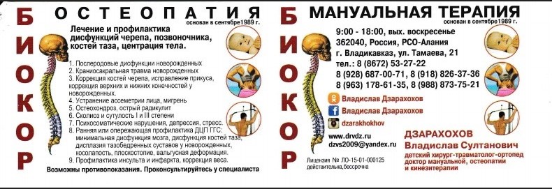 БИОКОР" - ЦЕНТР ОСТЕОПАТИЧЕСКОЙ МЕДИЦИНЫ , МАНУАЛЬНОЙ ТЕРАПИИ И KИНЕЗИТЕРАПИИ ВО ВЛАДИКАВКАЗЕ. Лечение и профилактика дисфункции черепа позвоночника. г. Владикавказ, ул. Тамаева, 21,