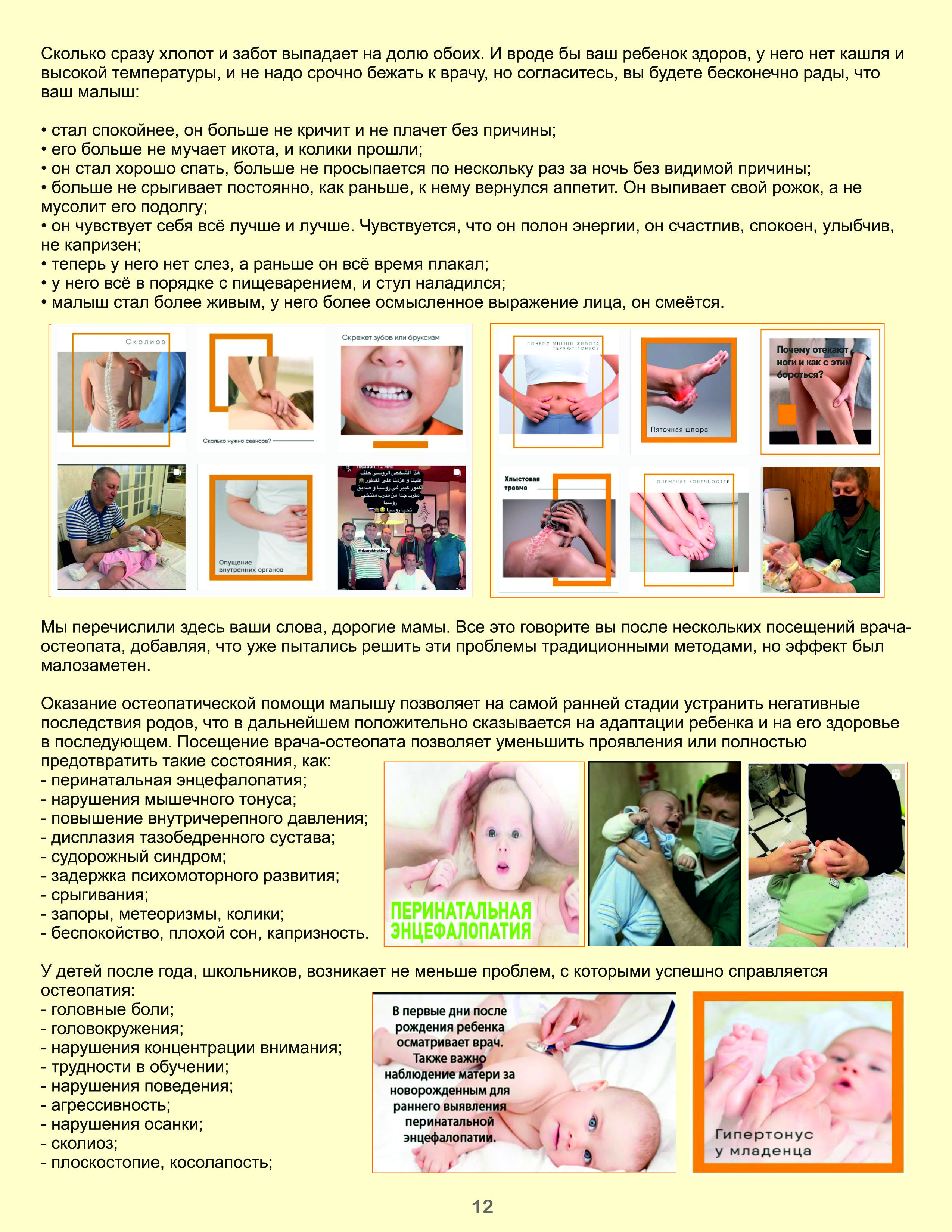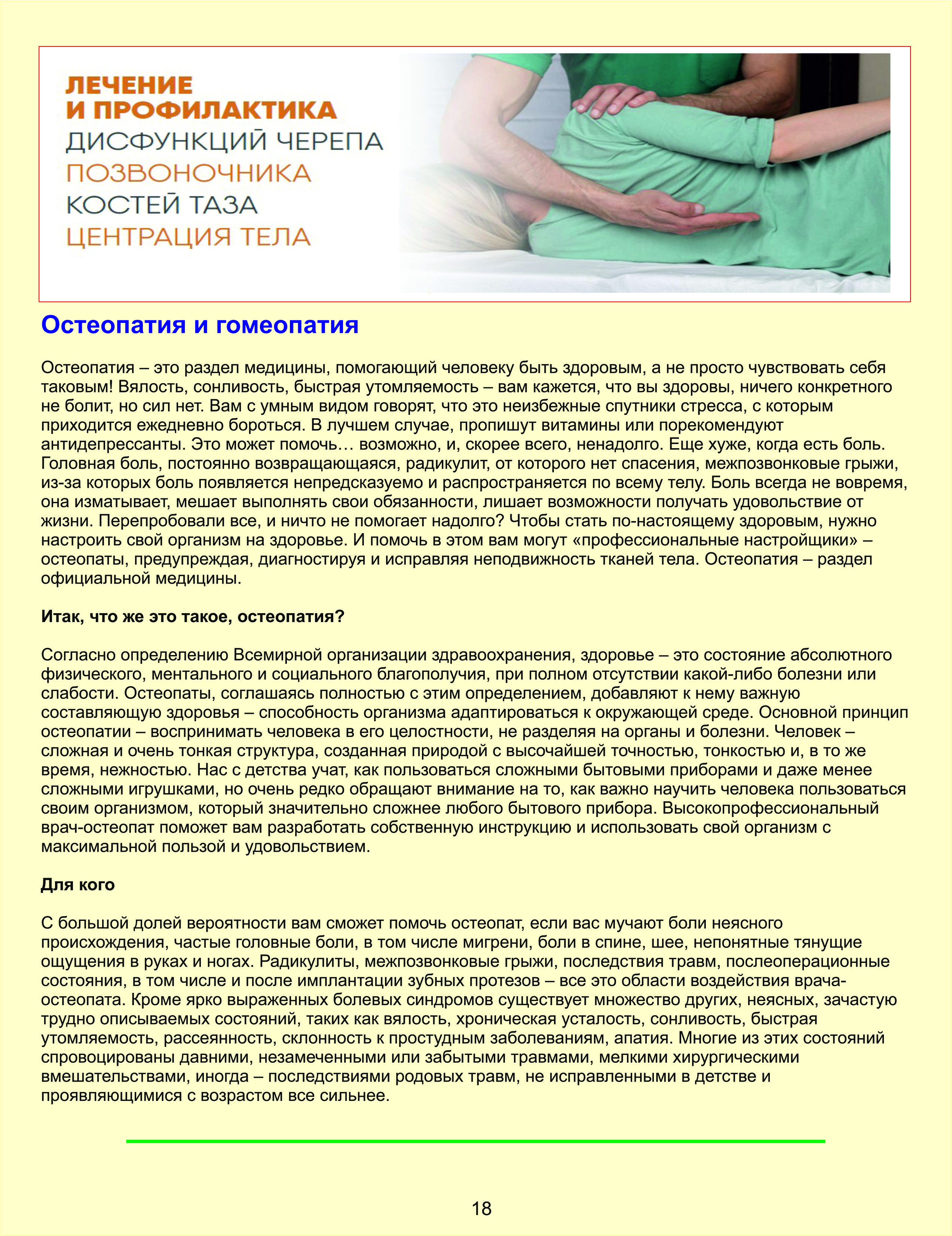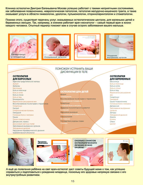 Принцип воздействия также основан на доверии к телу. Довериться профессионалу рекомендуется не только в случае болей и нарушений со стороны опорно-двигательного аппарата, но и при частых ОРВИ. В педиатрии, врачи – остеопаты успешно справляются со следующими состояниями: