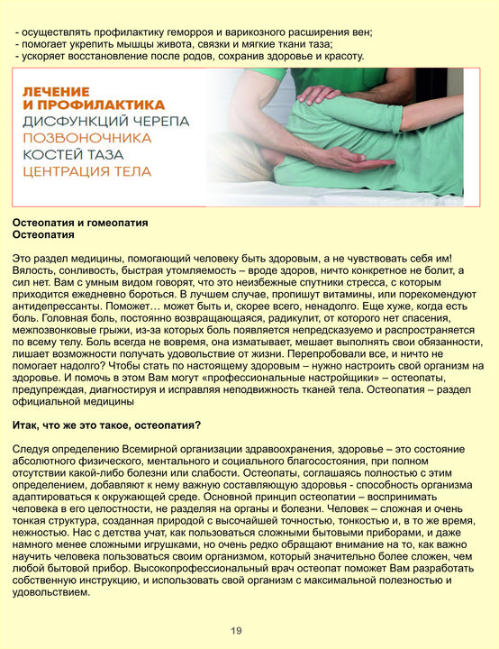 ЛЕЧЕНИЕ И ПРОФИЛАКТИКА ДИСФУНКЦИЙ ЧЕРЕПА, ПОЗВОНОЧНИКА, КОСТЕЙ ТАЗА, ЦЕНТРАЦИЯ ТЕЛА